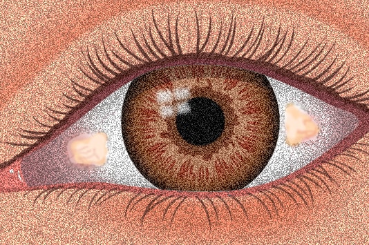 In some cases, these non-cancerous masses can grow into the corneal area, creating a condition called pterygium that can affect eyesight. They may appear yellowish, gray, or have little or no color at all.